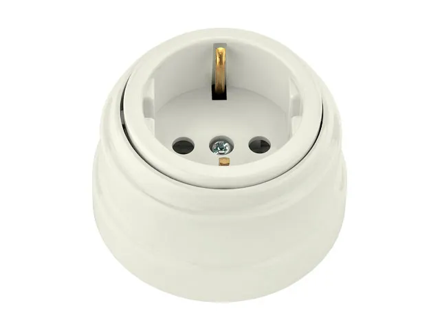 Розетка 1-ая (открытая, с/з) бежевая, Ретро, BYLECTRICA