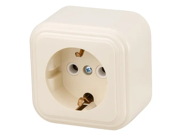 Розетка 1-ая (открытая, с/з) бежевая, Стандарт, Юпитер