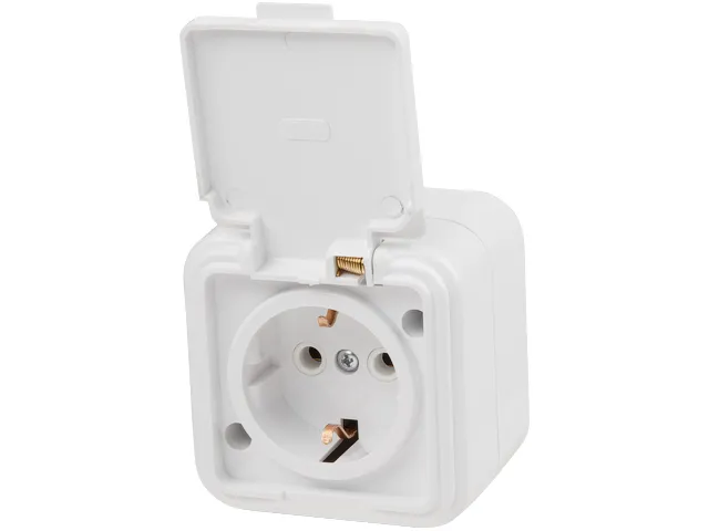 Розетка 1-ая (открытая, с/з, брызг. защ.) белая, Стандарт, Юпитер