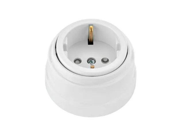 Розетка 1-ая (открытая, с/з, з/ш) белая, Ретро, BYLECTRICA
