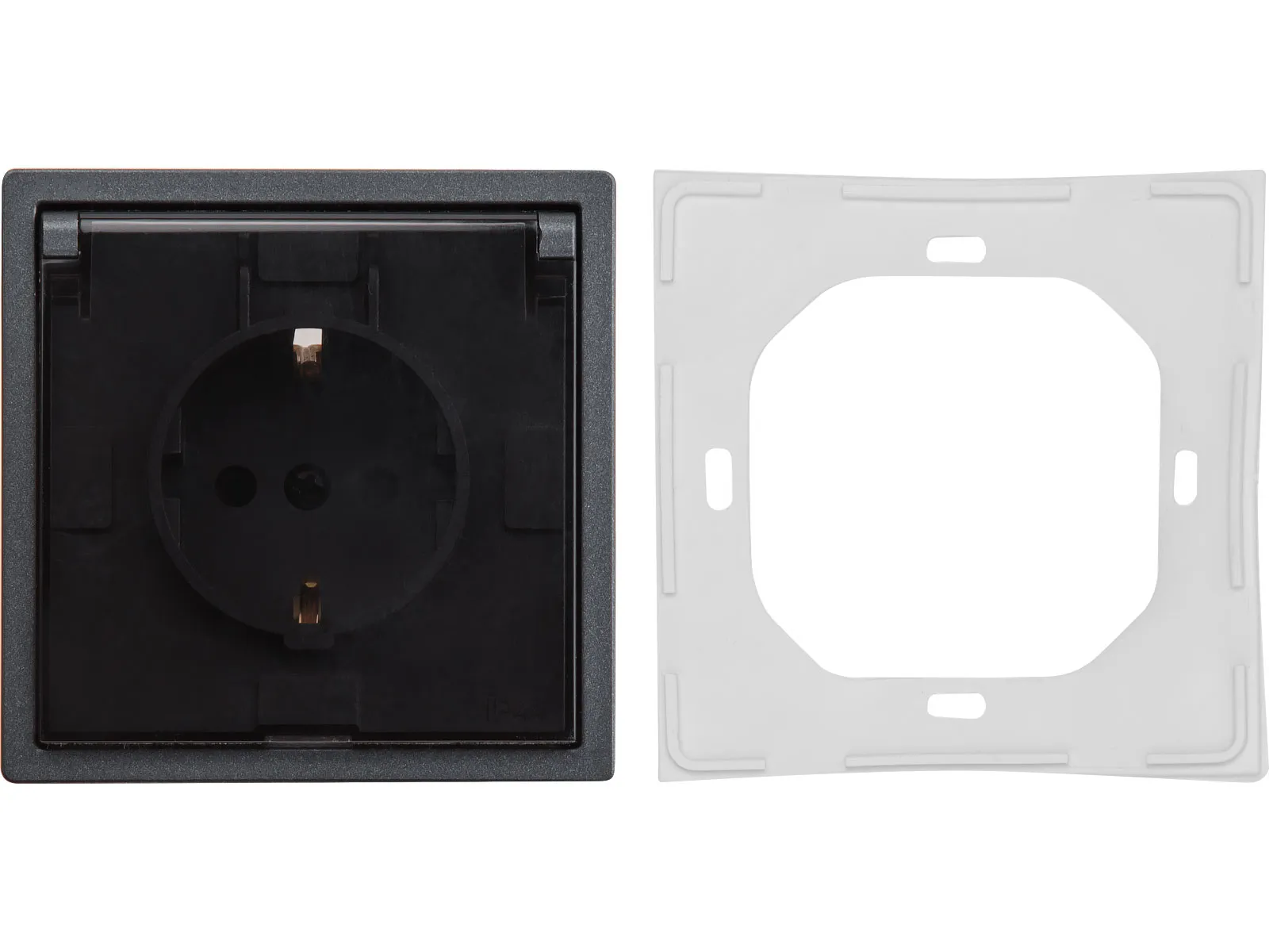 Розетка 1-ая с з/к крышкой прозрачн (скрытая, с/з, з/ш, брызг. защ.) графит, Carre, BYLECTRICA