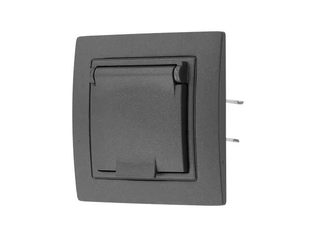 Розетка 1-ая с з/к крышкой (скрытая, с/з, з/ш,брызг. защ.) графит, Уют, BYLECTRICA