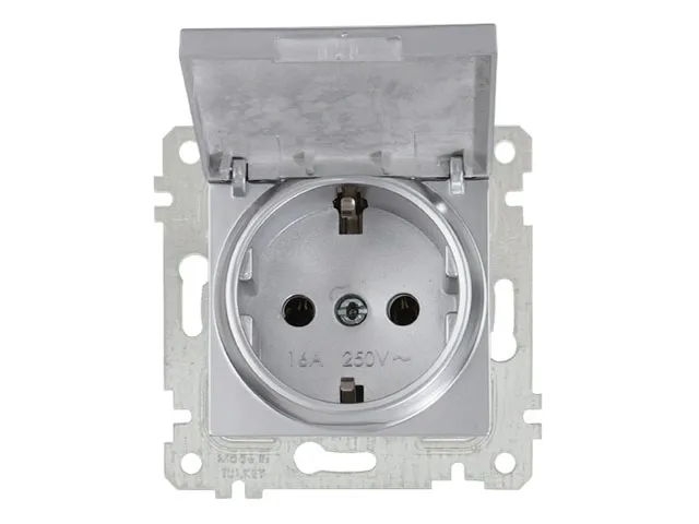Розетка 1-ая (скрытая, без рамки, с/з, с крышкой) серебро, RITA, MUTLUSAN