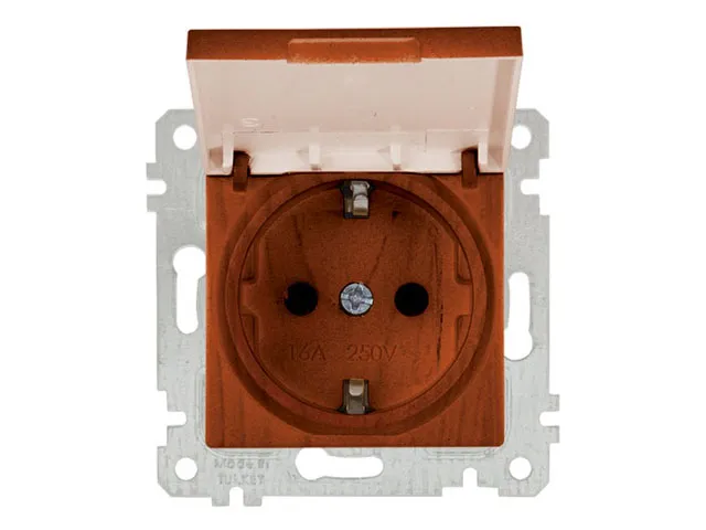 Розетка 1-ая (скрытая, без рамки, с/з, с крышкой) вишня, RITA, MUTLUSAN
