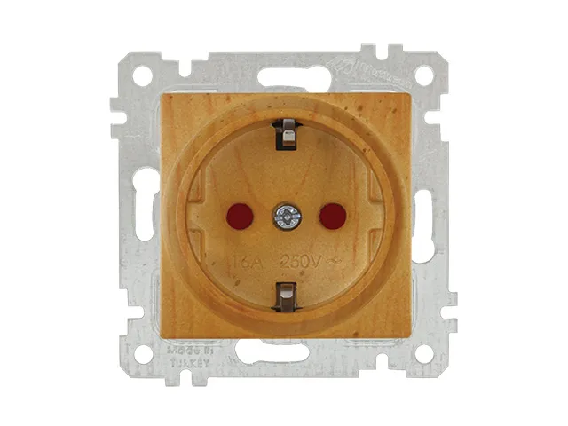 Розетка 1-ая (скрытая, без рамки, с/з, шторки) дуб, RITA, MUTLUSAN
