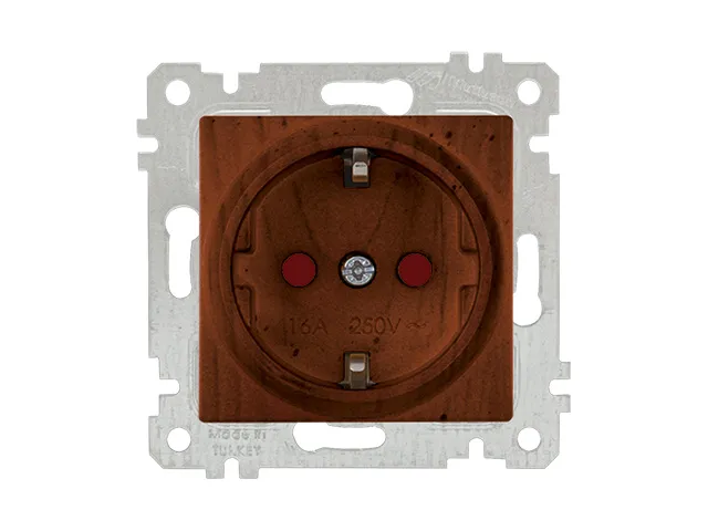 Розетка 1-ая (скрытая, без рамки, с/з, шторки) орех, RITA, MUTLUSAN