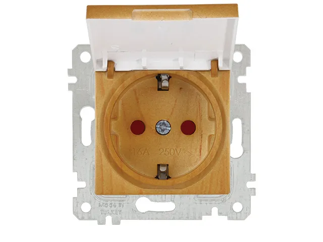 Розетка 1-ая (скрытая, без рамки, с/з, шторки, с крышкой) дуб, RITA, MUTLUSAN