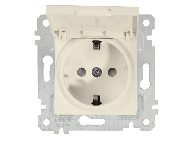 Розетка 1-ая (скрытая, без рамки, с/з, шторки,с крышкой) кремовая, RITA, MUTLUSAN