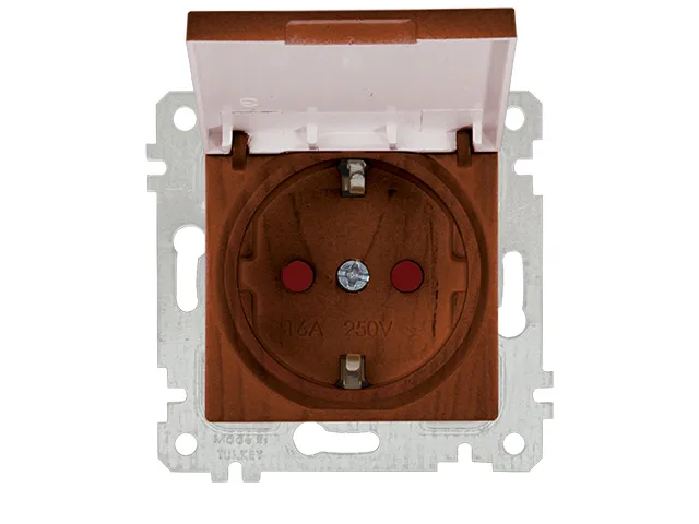 Розетка 1-ая (скрытая, без рамки, с/з, шторки,с крышкой) орех, RITA, MUTLUSAN