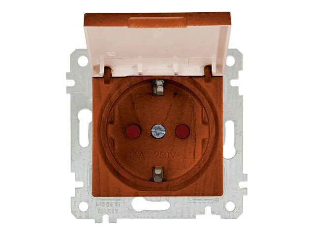 Розетка 1-ая (скрытая, без рамки, с/з, шторки,с крышкой) вишня, RITA, MUTLUSAN