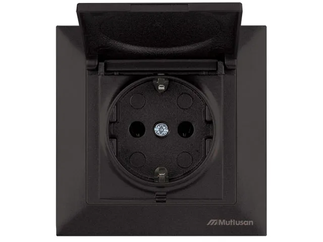 Розетка 1-ая (скрытая, с/з, с крышкой) черная, DARIA, MUTLUSAN