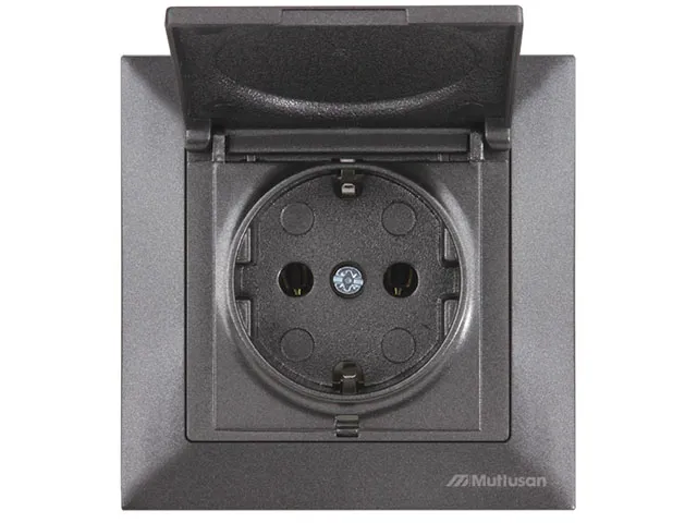 Розетка 1-ая (скрытая, с/з, с крышкой) дымчатая, DARIA, MUTLUSAN