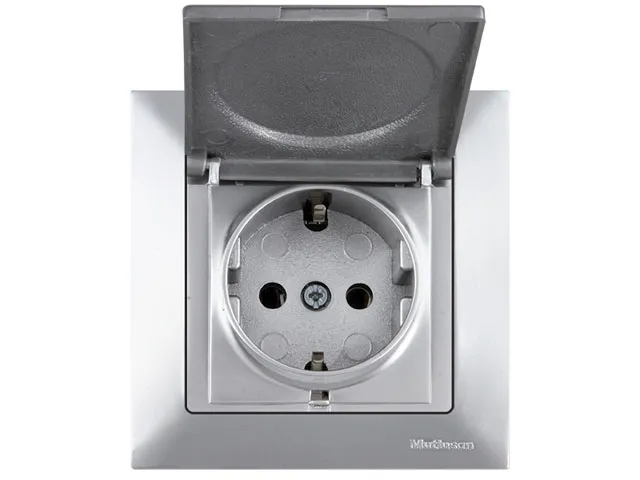 Розетка 1-ая (скрытая, с/з, с крышкой) серебро, DARIA, MUTLUSAN