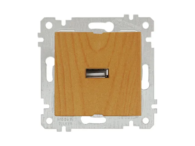 Розетка 1-ая USB (скрытая, без рамки) дуб, RITA, MUTLUSAN