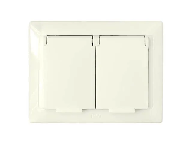 Розетка 2-ая (cкрытая, с/з, брызг. защ.) бежевая, Стиль, Bylectrica