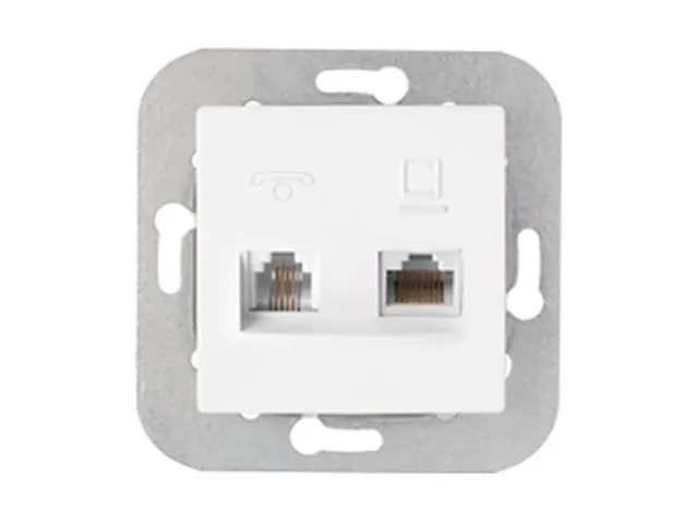 Розетка 2-ая комби телефонная+компьютерная (скрытая) белая, Уют, Bylectrica
