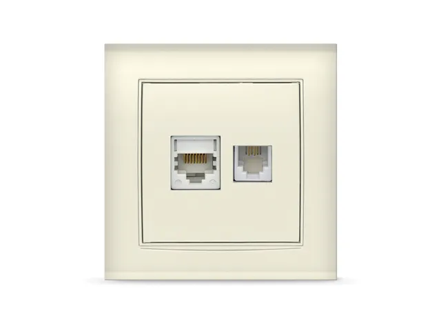 Розетка 2-ая компьютерная и телефонная (скрытая) слоновая кость, Бриллиант, UNIVersal
