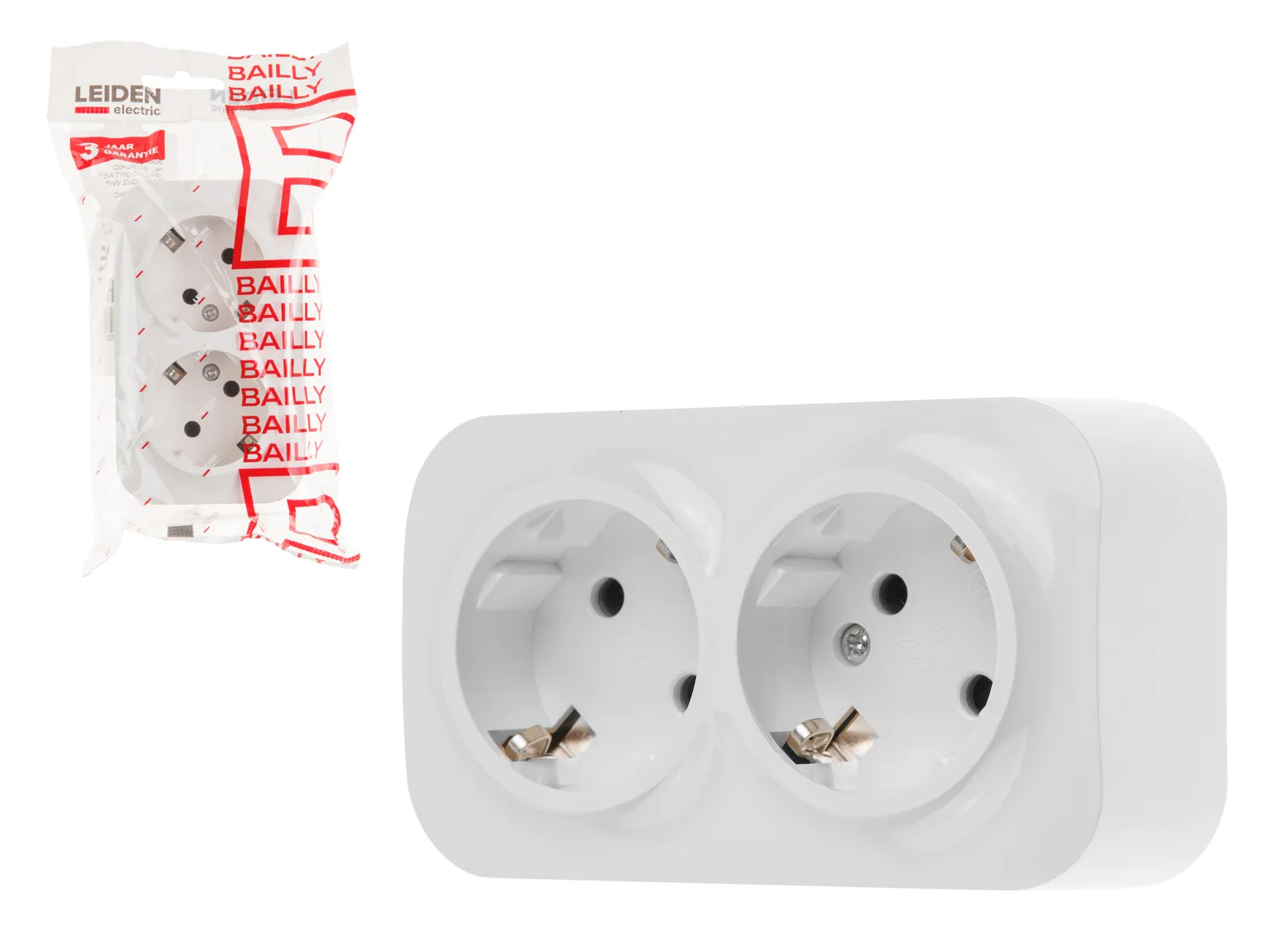 Розетка 2-ая (открытая, с/з) белая, Bailly, LEIDEN ELECTRIC