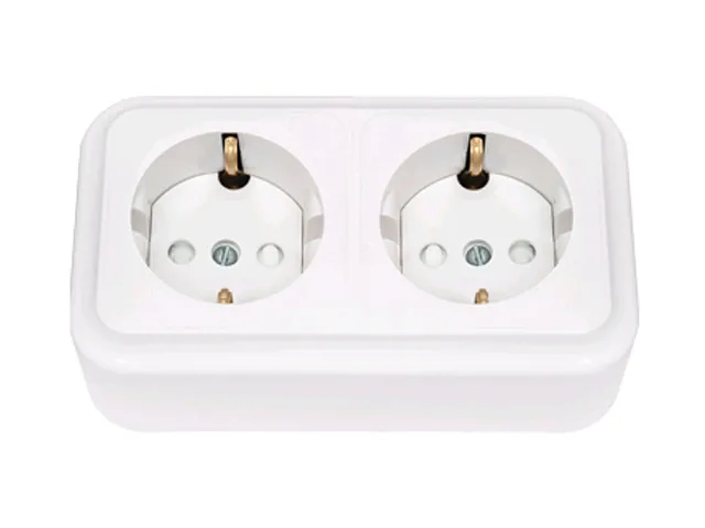 Розетка 2-ая (открытая, с/з, со шторками) белая, Пралеска, Bylectrica