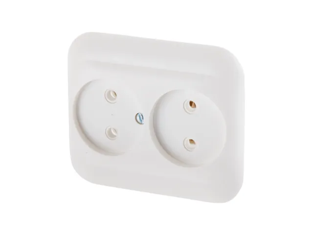 Розетка двухместная скрытой установки предназначена для присоединения электрических приемников с номинальным напряжением 250 В к электрической сети переменного тока в нормальных климатических условиях внешней среды по ГОСТ 15150 и ГОСТ 15543.1. Розетка двухместная, но устанавливается в одноместную монтажную коробку.