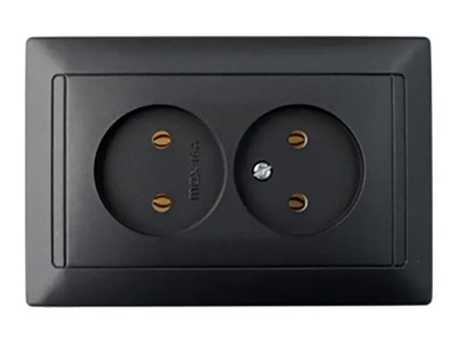 Розетка 2-ая (скрытая, б/з) графит, Стиль ГРАФИТ, Bylectrica