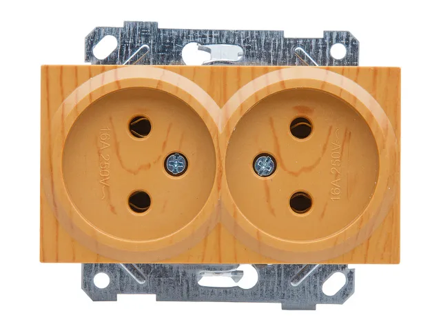 Розетка 2-ая (скрытая, б/з, керамика) дуб, RITA, MUTLUSAN