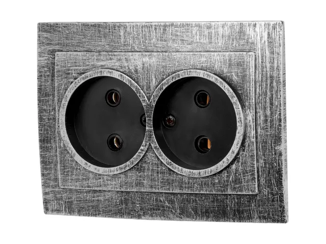 В комплект входит двухместная розетка с рамкой.
