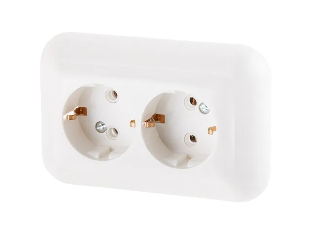 Розетка двухместная скрытой установки с заземляющим контактом предназначена для присоединения электрических приемников с номинальным напряжением 250 В к электрической сети переменного тока в нормальных климатических условиях внешней среды по ГОСТ 15150 и ГОСТ 15543.1. Розетка двухместная, но устанавливается в одноместную монтажную коробку.