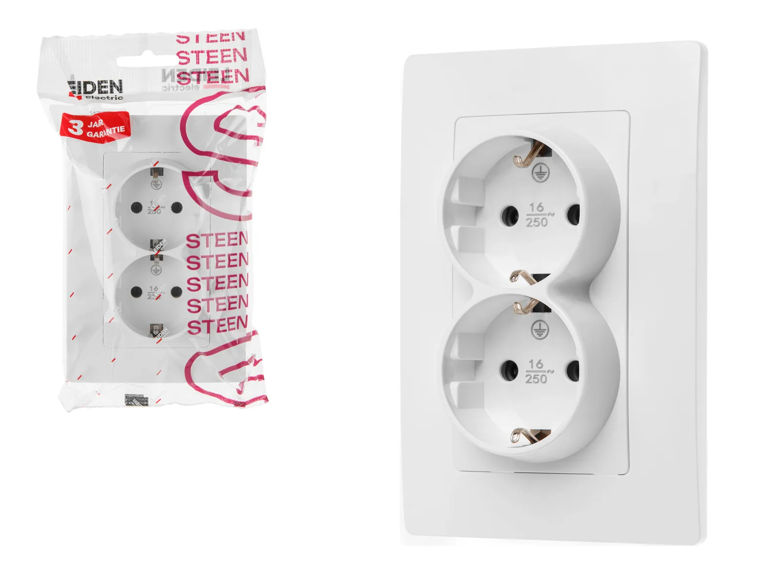 Розетка 2-ая (скрытая, с/з) белая, Steen, LEIDEN ELECTRIC