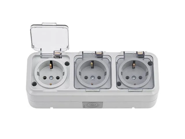 Розетка 3-ая (открытая, с/з, брызг. защ.) серая, Пралеска Аква, Bylectrica