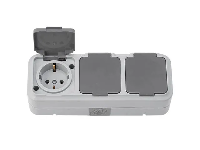Розетка 3-ая (открытая, с/з, брызг. защ.) серая, Пралеска Аква, Bylectrica