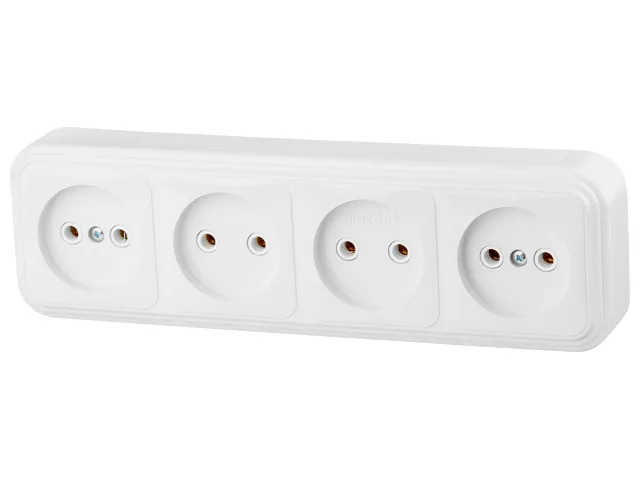Розетка 4-ая (открытая, б/з) белая, Стандарт, Юпитер