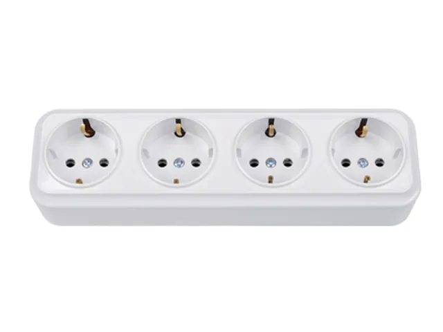 Розетка 4-ая (открытая, с/з) белая, Вариант, Bylectrica