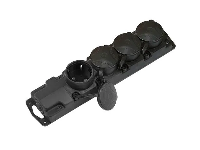 Розетка 4-ая переносная (с/з, 16А, 250В, брызг. защ.) черная, Bylectrica