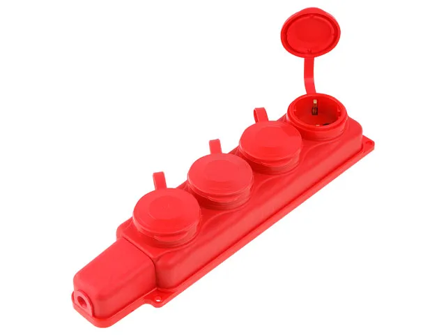 Розетка 4-ая переносная (с/з, 16А, 250В, брызг. защ.) каучук, красная Юпитер