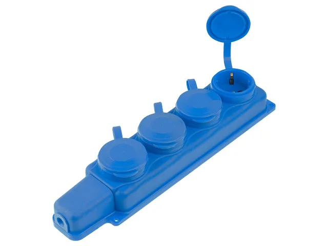 Розетка 4-ая переносная (с/з, 16А, 250В, брызг. защ.) каучук, синяя Юпитер