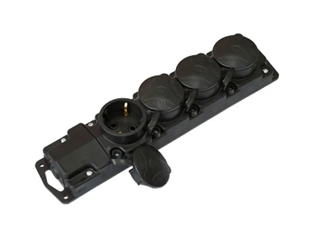 Розетка 4-ая переносная (с/з, 16А, 250В, з/ш, брызг. защ.) черная, BYLECTRICA