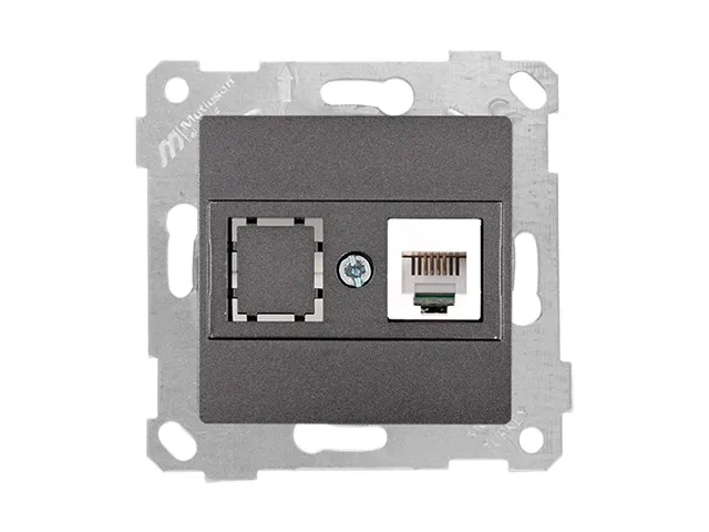 Розетка телефонная 1хRJ12 (скрытая, без рамки) дымчаиая, RITA, MUTLUSAN