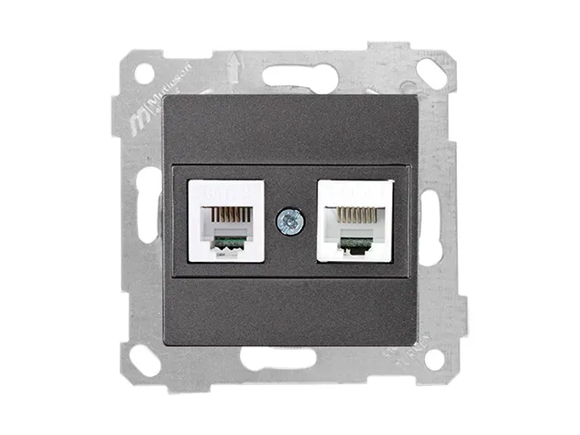 Розетка телефонная + компьютерная (RJ12+Cat5e, скрытая, без рамки) дымчатая, RITA, MUTLUSAN