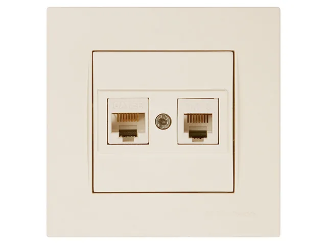 Розетка телефонная + компьютерная (RJ12+Cat5e, скрытая) кремовая, RITA, MUTLUSAN