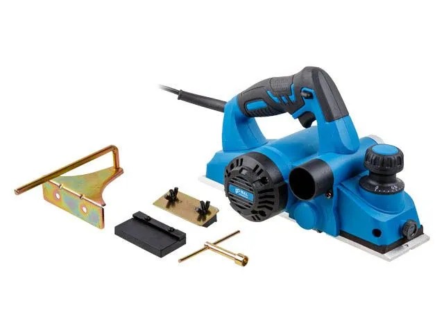 Рубанок отличается глубиной строгания до 2 мм, низким уровнем шума, мощным двигателем 850 Вт, позволяющим осуществлять чистое строгание. Модель оснащена алюминиевой подошвой, одним пазом для съема фаски. Для безопасности пользователя предусмотрена блокировка кнопки включения. Удобству в эксплуатации способствует обрезиненная рукоятка, мягкий резиновый кабель 2 м.