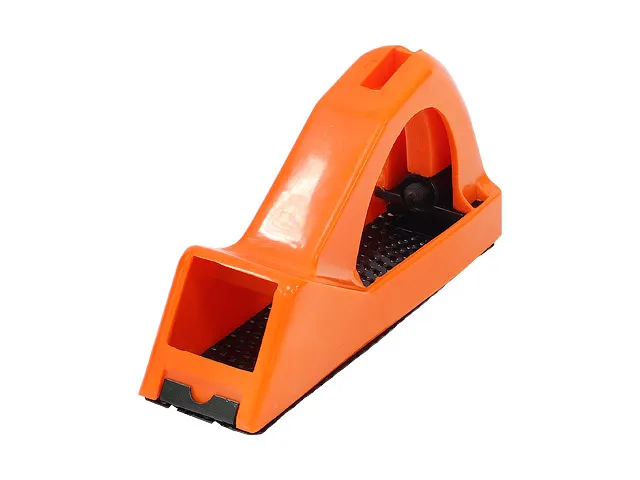 Обдирочный рубанок изготовлен из пластмассы. Инструмент имеет крепления, позволяющие быстро и легко заменять использованные рабочие полотна. Обдирочный рубанок используется при обработке гипсокартона, пластмасс, фибергласа и других легкообрабатываемых материалов.