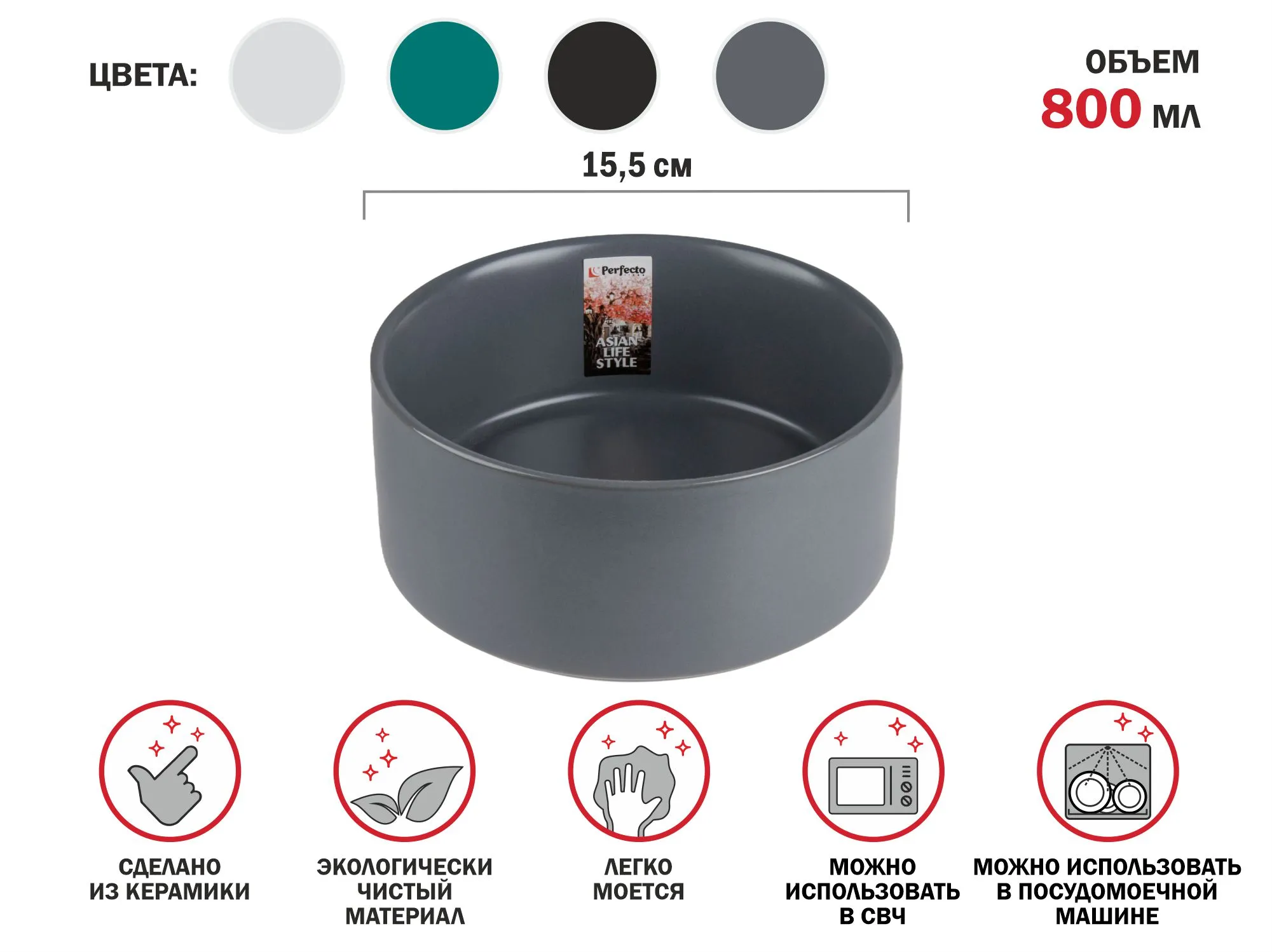 Салатник керамический, 15,5 см, серия ASIAN, серый, PERFECTO LINEA