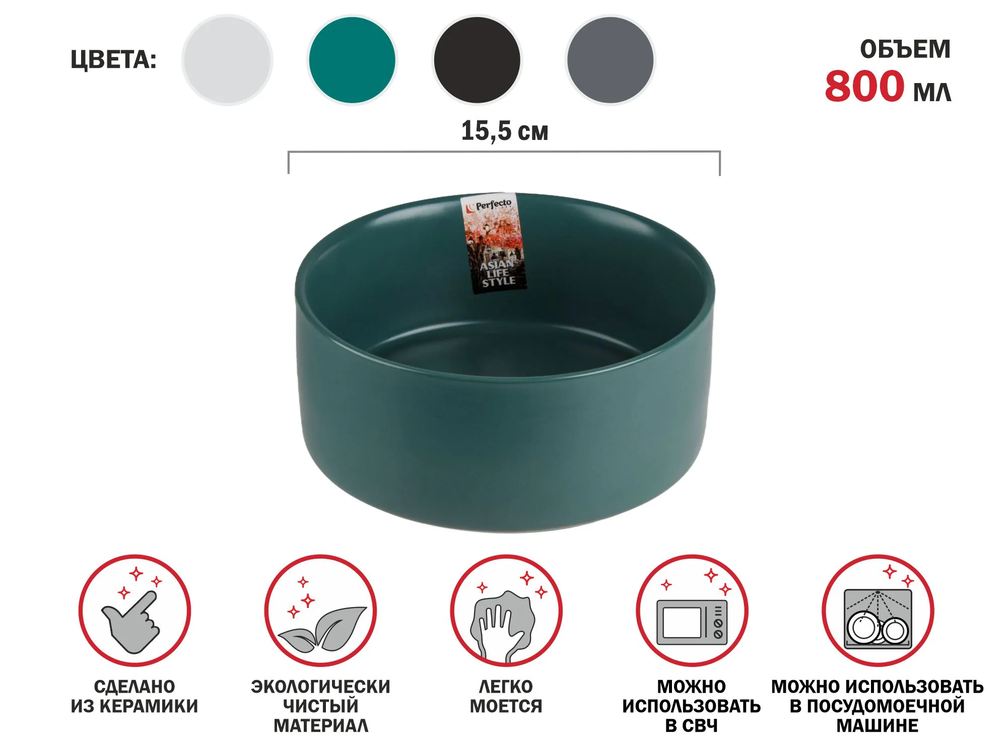17-131545 Салатник керамический, 15 см, серия ASIAN, зеленый, PERFECTO LINEA,