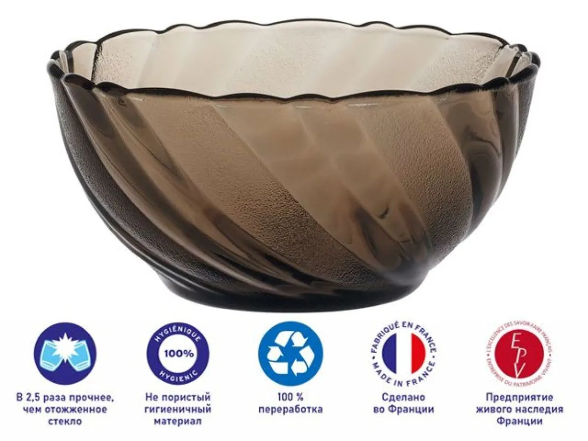 Салатник Beau Rivage из сверхпрочного закаленного стекла от ТМ Duralex - надежный помощник в приготовлении любимых рецептов. Классический темный цвет стекла придаст изысканный вид сервировке стола. Ударопрочное стекло обеспечивает привлекательный внешний вид и устойчиво к появлению царапин. Салатники компактны в хранении и экономят место на кухне, ведь их удобно штабелировать. Стеклянная посуда ТМ Duralex производится во Франции с 1945 года. Процесс закаливания придает стеклу ТМ Duralex особую прочность. Во время закаливания стекло ТМ Duralex , предварительно нагретое до 700°С, подвергается резкому охлаждению холодным воздухом. Этот процесс делает стекло ТМ Duralex в 2,5 раза более устойчивым к механическим повреждениям, чем отожженное стекло. Характеристики: ударопрочное закаленное стекло, термостойкость до 130 ° C (EN 1183), можно мыть в посудомоечной машине, подходит для использования в микроволновой печи.