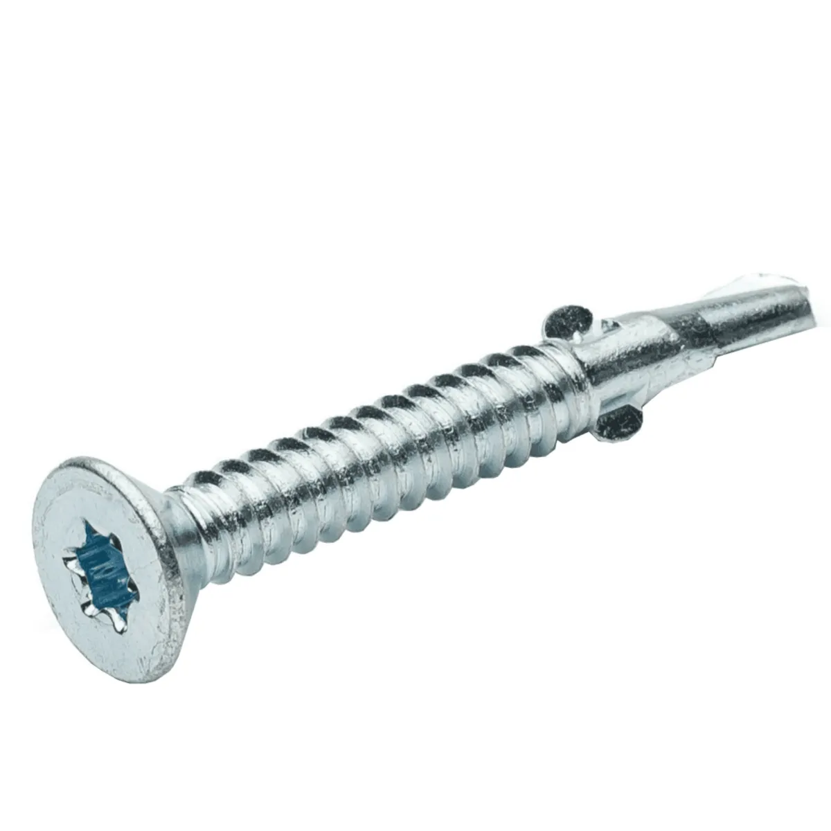 Зенкующая потайная головка позволяет полностью утопить саморез в закрепляемом материале и препятствует его прокручиванию.