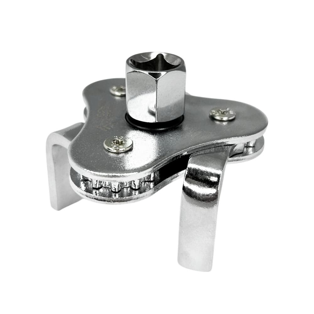 Съемник имеет 3 плоских захвата, которыми он зажимает фильтр. Съемник масляного фильтра трехлапый можно вращать универсальным или накидным ключом и головкой, что актуально в условиях ограниченного пространства при плотном размещении узлов и агрегатов мотора.
