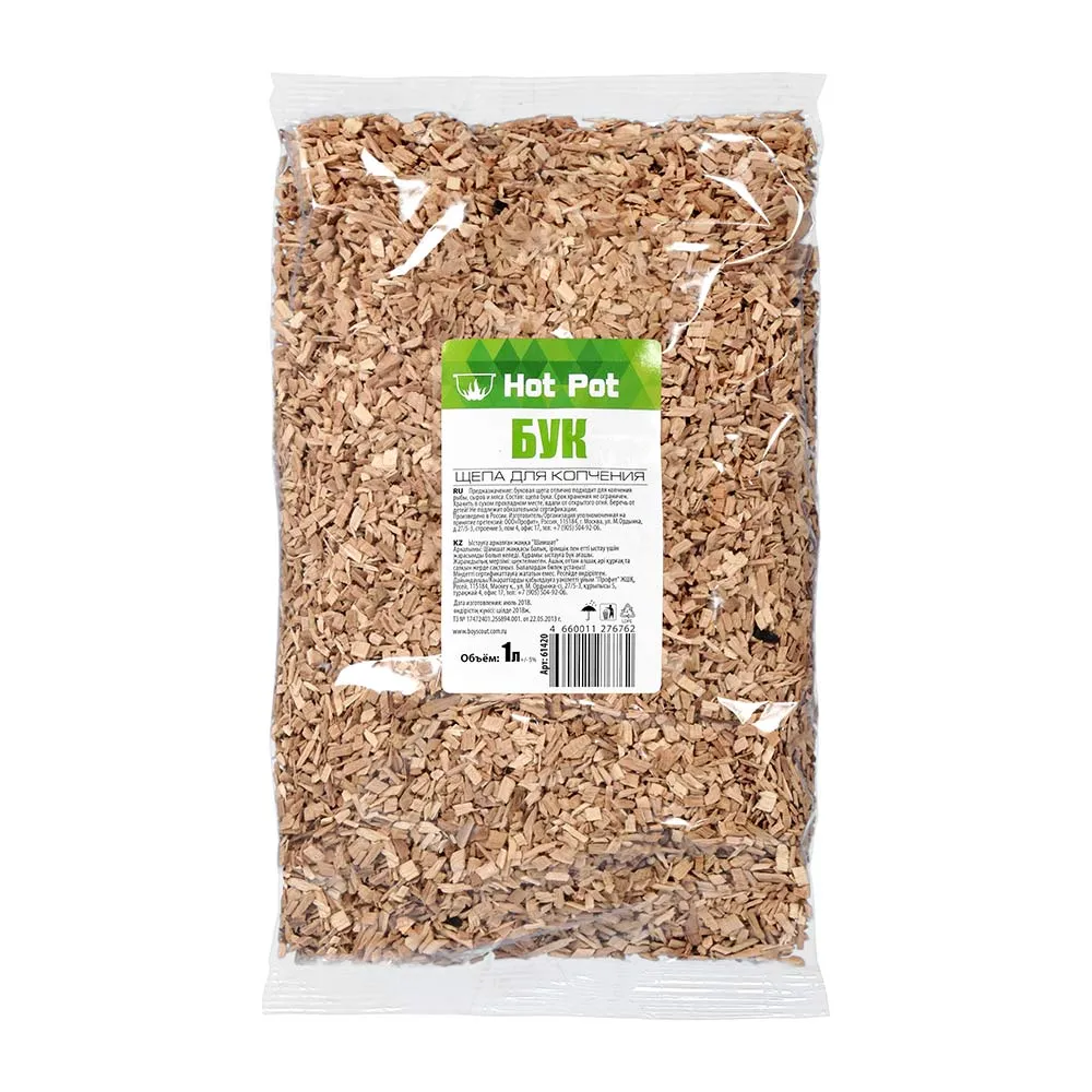 Описание: Щепа бука hot pot изготавливается только из натуральной древесины. Проста в использовании. Однородный состав позволяет добиться равномерного копчения, улучшая вкус и аромат готового продукта. Длительный срок хранения достигается за счет оптимальной влажности щепы.