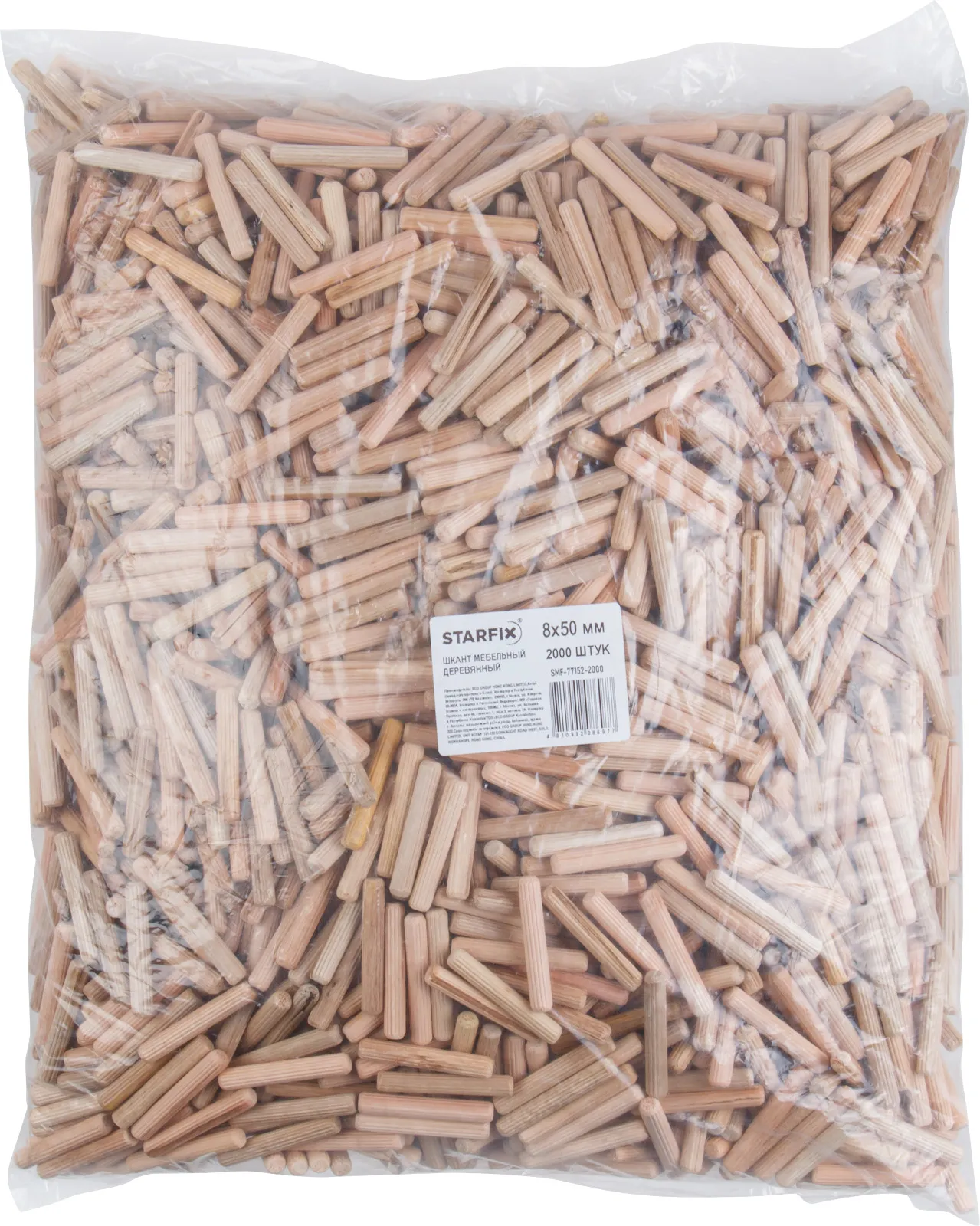 Шкант мебельный 8х50 мм деревянный (2000 шт в пакете) STARFIX