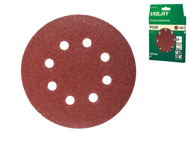 Шлифлист 125мм круг Р120 8 отв. 10шт. ВОЛАТ